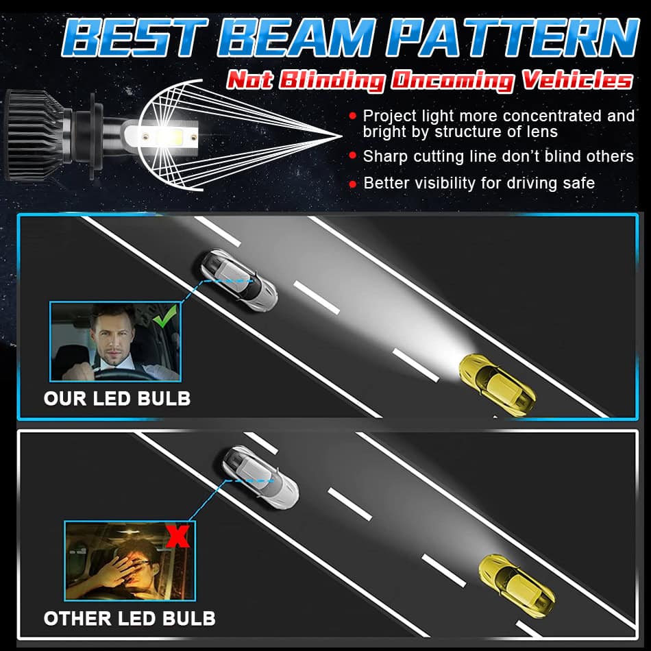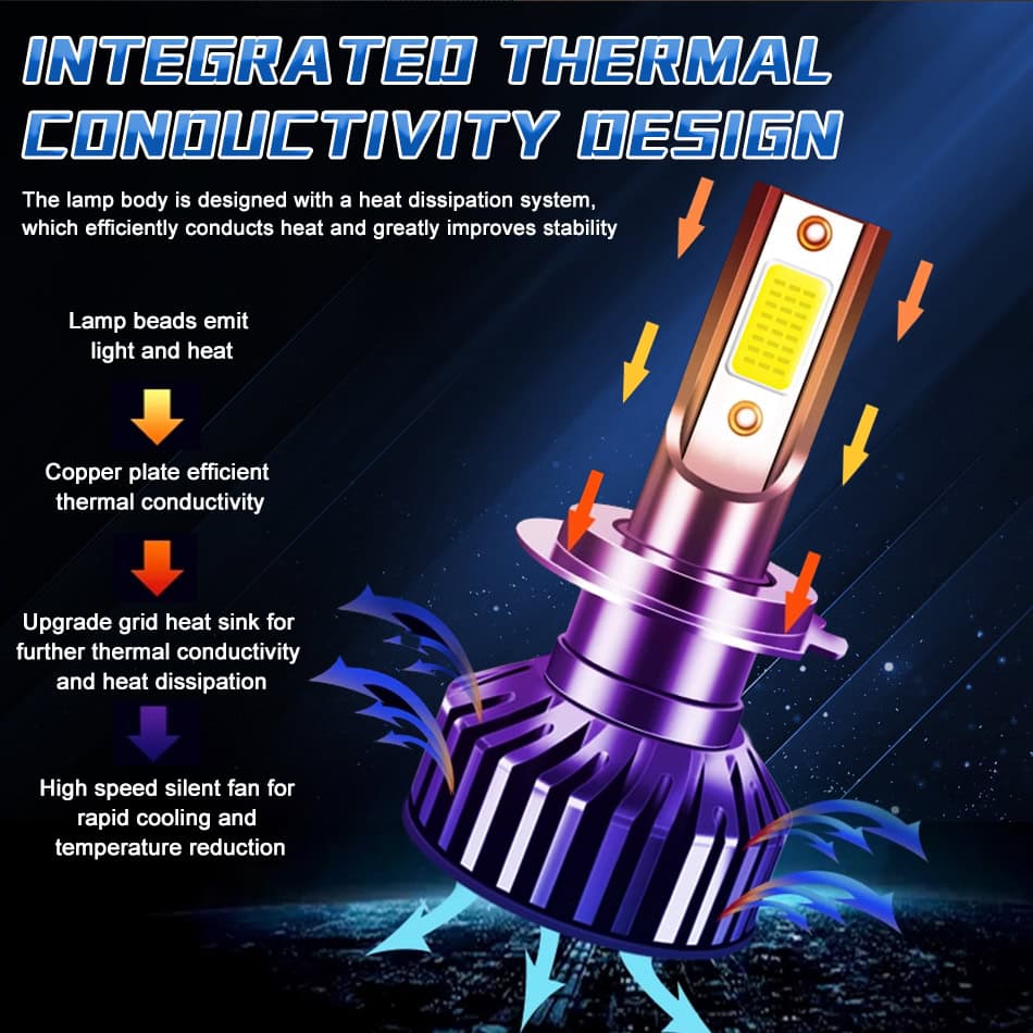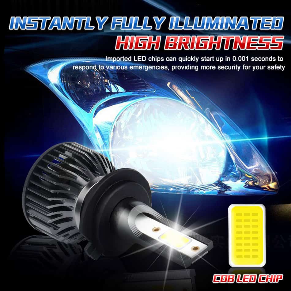 Equipped with newest COB LED chips, this car headlight produces ultra-bright, high-visibility lighting.