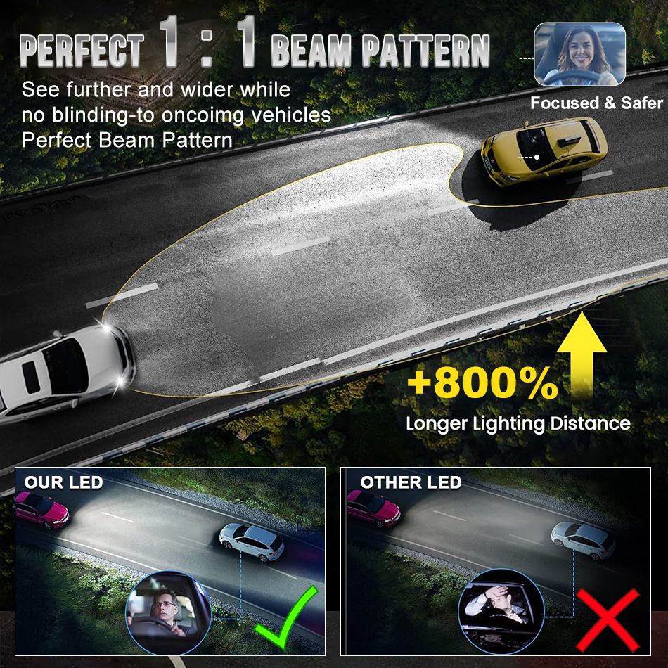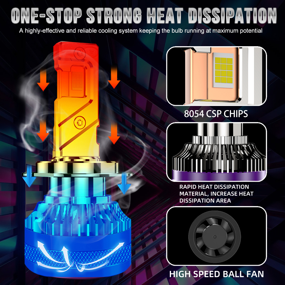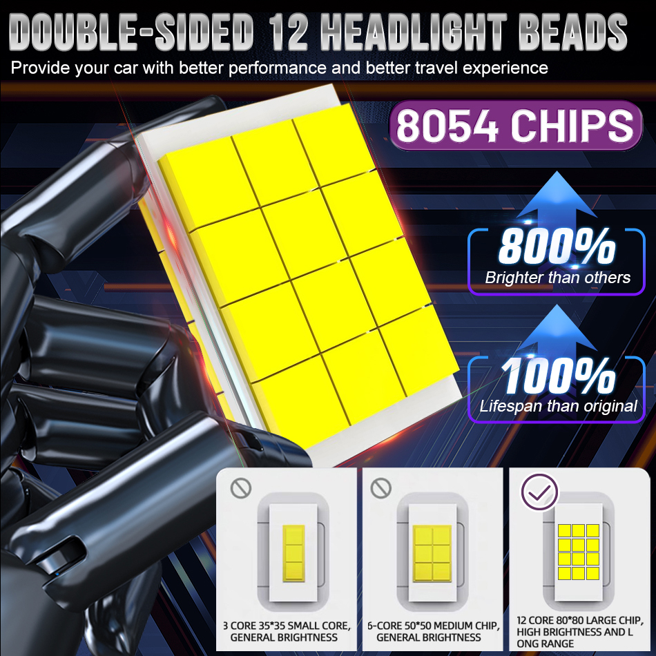 Double-sided 12 headlight beads and 8054 chips deliver intense, focused brightness for safer night driving.
