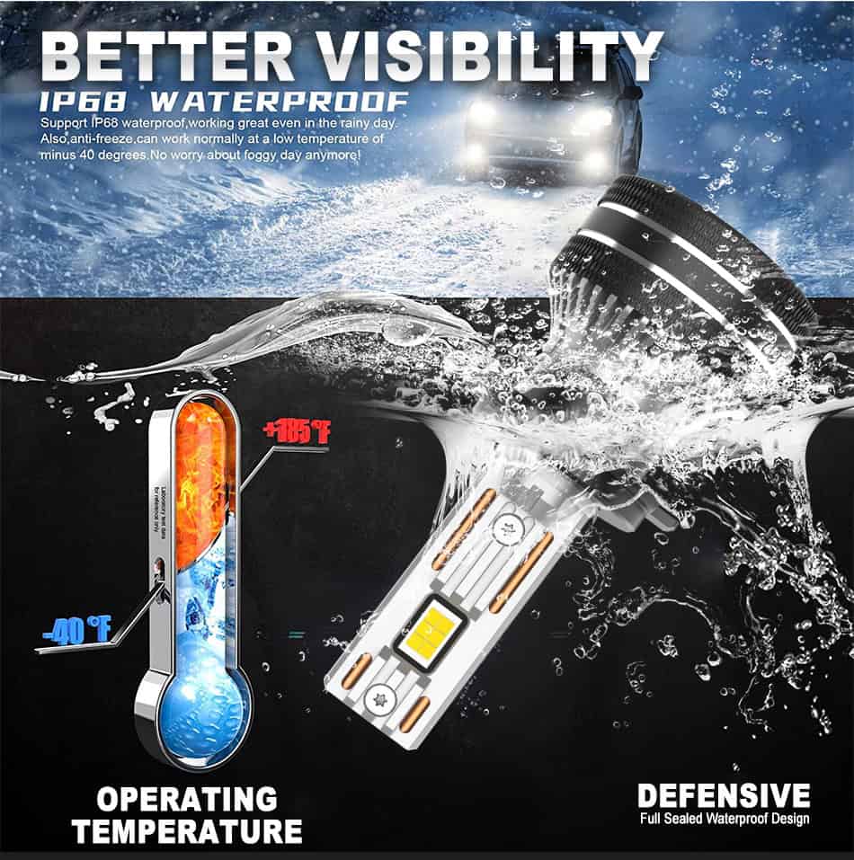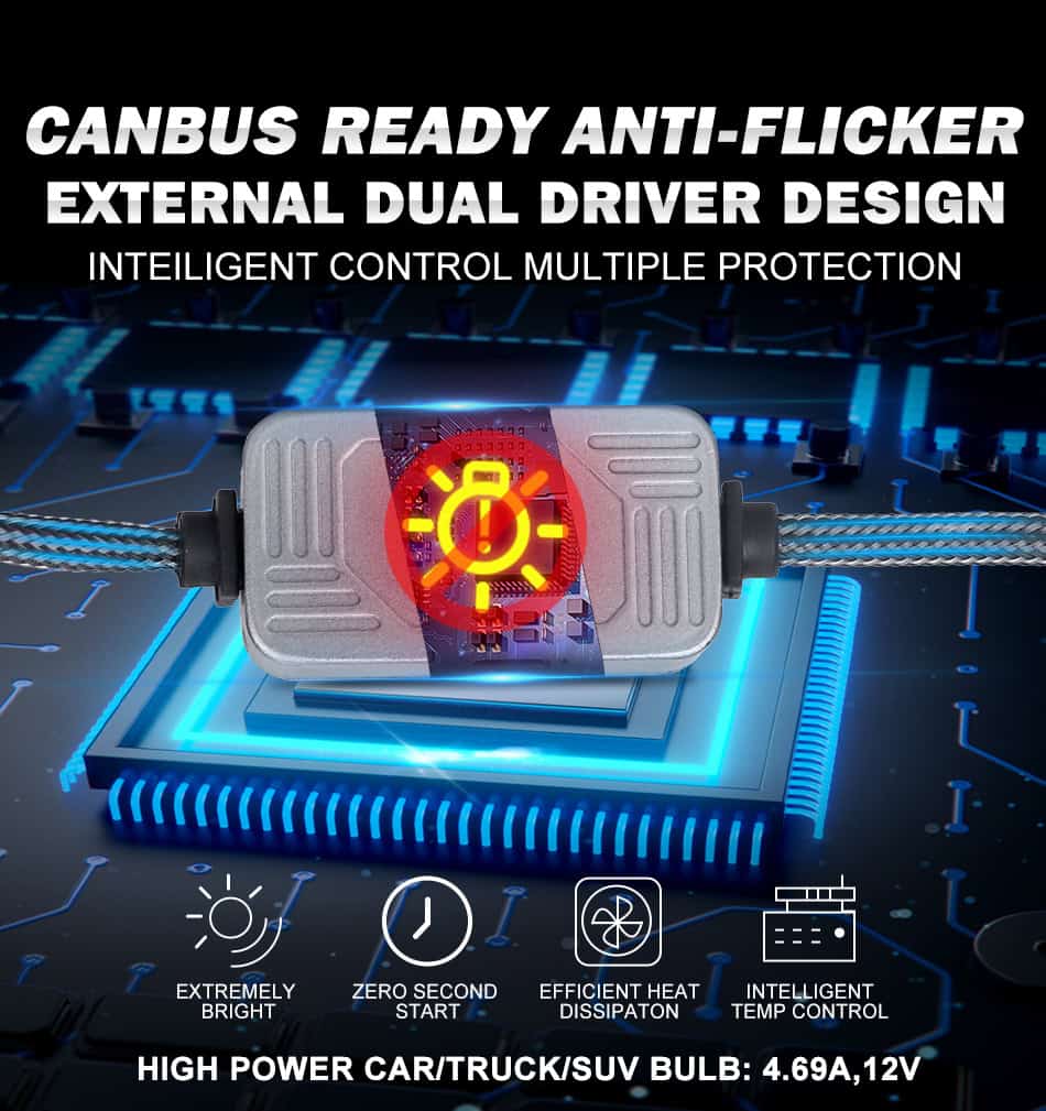 Equipped with intelligent CANBUS compatibility and an external dual-driver system, the bulbs eliminate flickering, warning errors, and interference—ensuring smooth, error-free operation for most vehicles.
