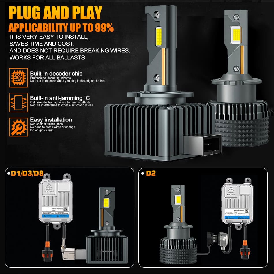 Direct-fit D1S bulbs design offers quick, effortless replacement for most vehicles..