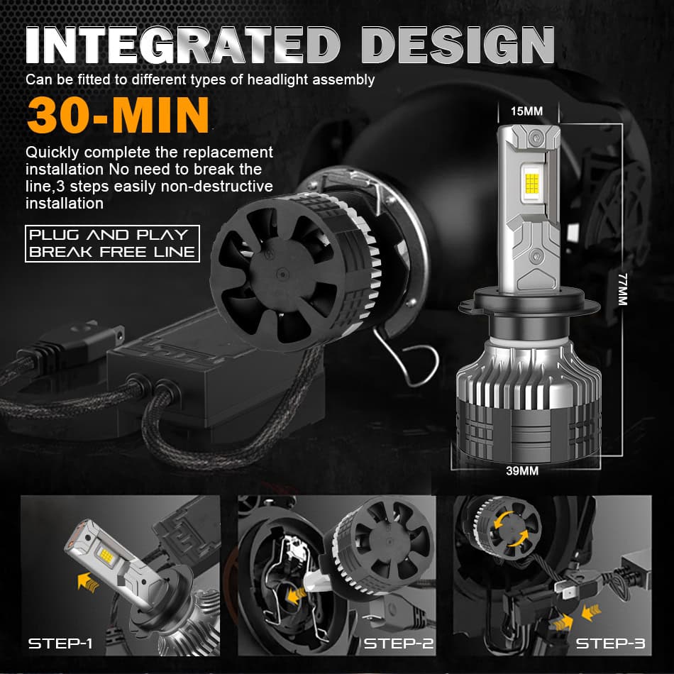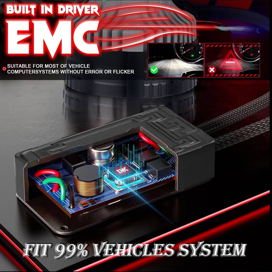 Equipped with intelligent CANBUS control and EMC protection, the bulbs prevent error warnings, eliminate flickering, and reduce radio interference—ensuring smooth, error-free operation.